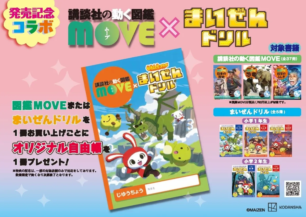 2025年3月5日、講談社から「まいぜんドリル」シリーズが発売されるのに合わせて、3月14日頃から講談社の動く図鑑「MOVE」とのコラボフェアが開催されます。ファンにとっては嬉しいニュースですね。