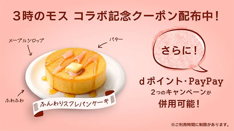 さらに、モスバーガーでは15時から18時の時間帯に限定したポイント還元キャンペーンを実施。dポイントアプリからエントリーし、規定額以上の注文をすることで、ポイントが3倍となる特典があります。一方、PayPayでも同様にポイント付与があり、ダブルで享受できるチャンスです。