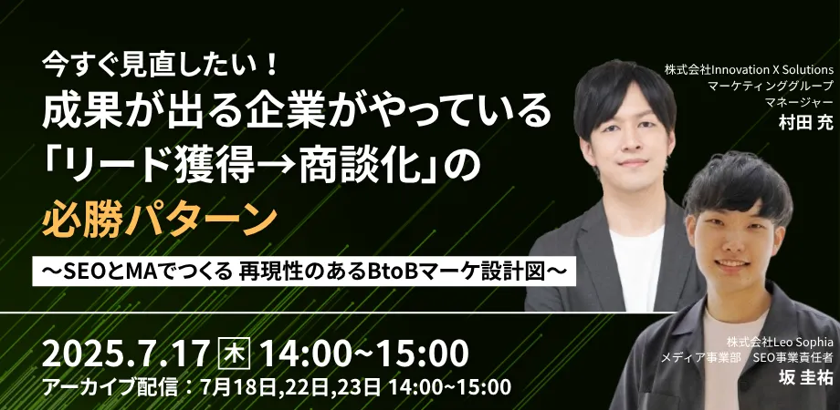 2025年7月17日、東京都渋谷区にて「リード獲得から商談化までの必勝パターン」をテーマにしたセミナーが開催されます。このセミナーは、株式会社イノベーションのグループ会社である株式会社Innovation X Solutionsが主催し、Leo Sophia社との共催によって特別なセッションが行われます。