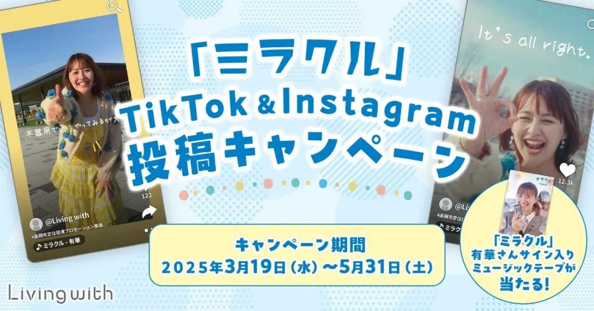 今回のキャンペーンでは、有華さんが作詞・作曲した新生活を応援するプロモーションソング「ミラクル」を使用した動画を、参加者にSNS(TikTokまたはInstagram)に投稿してもらいます。投稿形式は自由で、動画を撮影する際は「ミラクル」の曲に合わせて踊ったり、歌ったり、あるいは楽曲とマッチする写真や映像を組み合わせたりすることが可能です。また、アンバサダーのPR動画を真似たバックダンスに挑戦するのも良いアイデアです。
