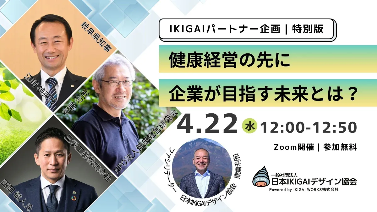 2026年4月22日、健康経営の新たな可能性を探るためのウェビナー『IKIGAIパートナーウェビナー特別版』がオンラインで無料開催されます。この企画は、一般社団法人IKIGAI社団が主催しており、現代のビジネス環境における「生きがい」という概念に焦点を当てています。