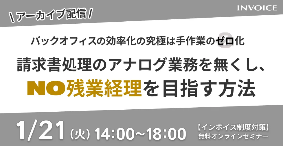 この問題を解決するために、株式会社インボイスは受取請求書処理の簡素化を目指したアーカイブセミナーを開催します。セミナーでは、同社が提供する様々なサービスやこれまでの導入事例を踏まえ、バックオフィス業務の改善に向けて具体的な手法や取り組みを紹介します。