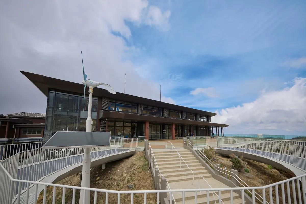 約18メートルの直径を持つ風の輪テラスは、風を感じながら大自然とのつながりを深められる場所です。床のメタルを通じて、足元からの吹き抜ける風を感じることができ、小さなお子さまや車椅子利用者も楽しめるよう配慮されています。