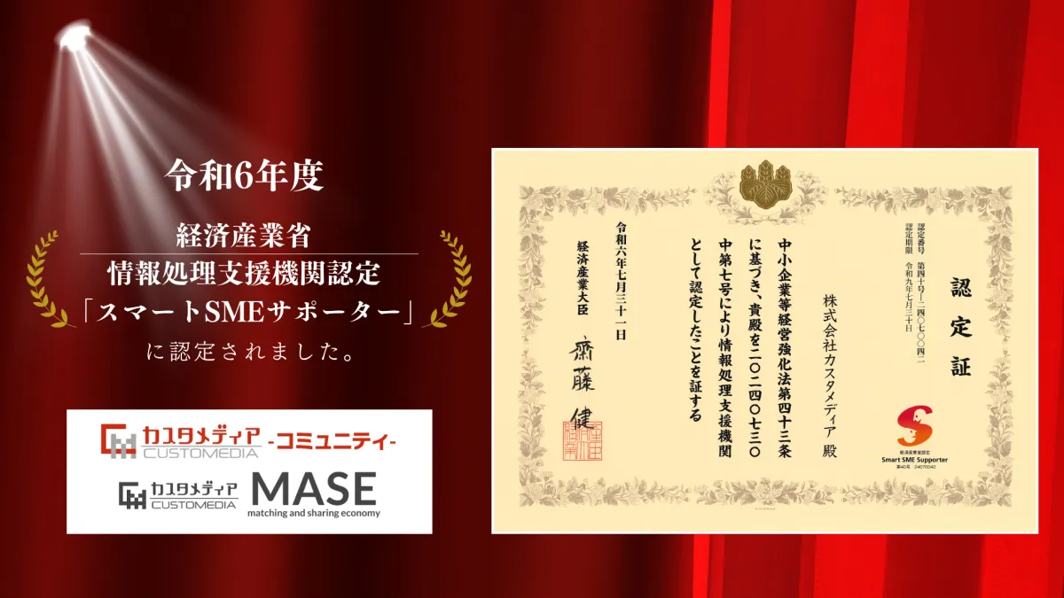 この度、株式会社カスタメディアが経済産業省より「情報処理支援機関認定(スマートSMEサポーター認定)」を取得しました。これは、中小企業のIT活用を支援する企業としての証として、信頼性を高める重要な認定です。