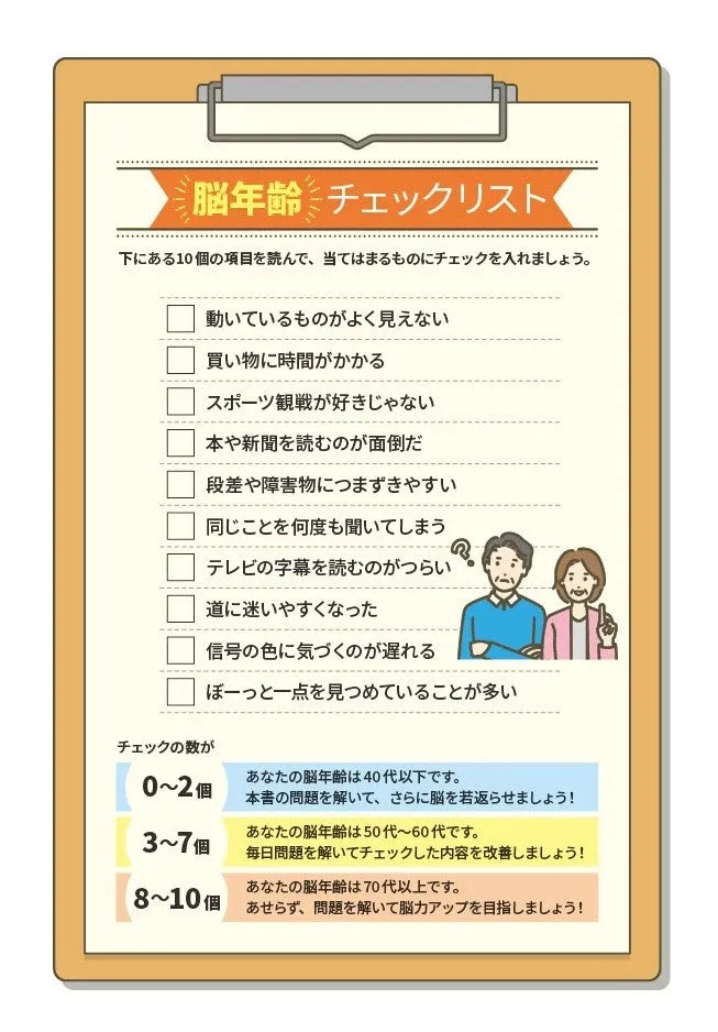 さらに、読者自身の認知能力を確認するための脳年齢チェックも用意されています。これにより、自己の認知機能を知り、育成プログラムに役立てることができます。