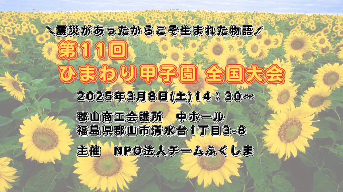 福島県福島市のNPO法人チームふくしまが主催する「第11回ひまわり甲子園全国大会」が、2025年3月8日に郡山商工会議所中ホールにて開催されます。この大会は、毎年福島県内で行われており、今回は初めて郡山市での実施となります。