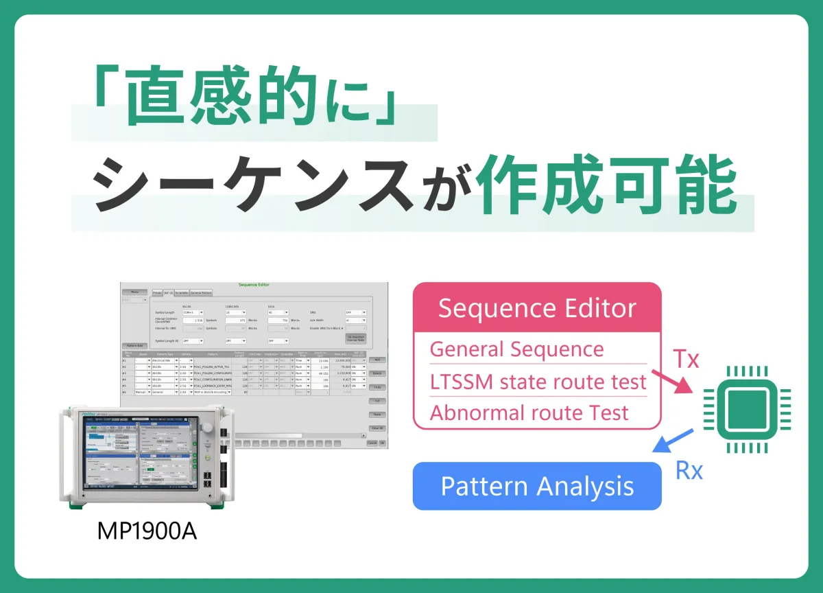 アンリツ株式会社は、最新のPCI Express® 6.0(PCIe® 6.0)に対応した強化機能を搭載した高性能BERT(Bit Error Rate Tester)「Signal Quality Analyzer-R MP1900A」を発表しました。この新機能「Sequence Editor」は、検証およびデバッグ作業を格段に効率化します。