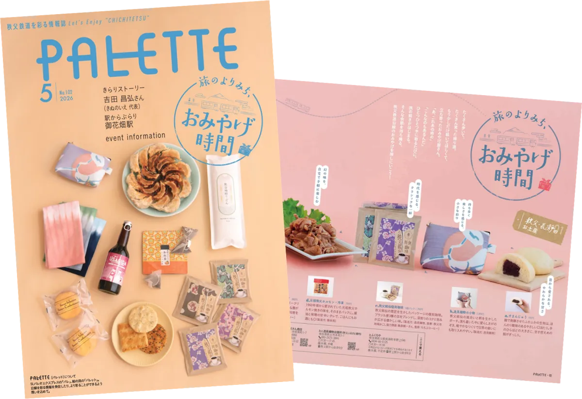 2026年4月24日、秩父鉄道株式会社が発行する地域情報誌「PALETTE」5月号がリリースされました。今回の特集タイトルは「旅のよりみち、おみやげ時間」。この号では、秩父鉄道沿線で手に入る魅力的なお土産に焦点を当てています。