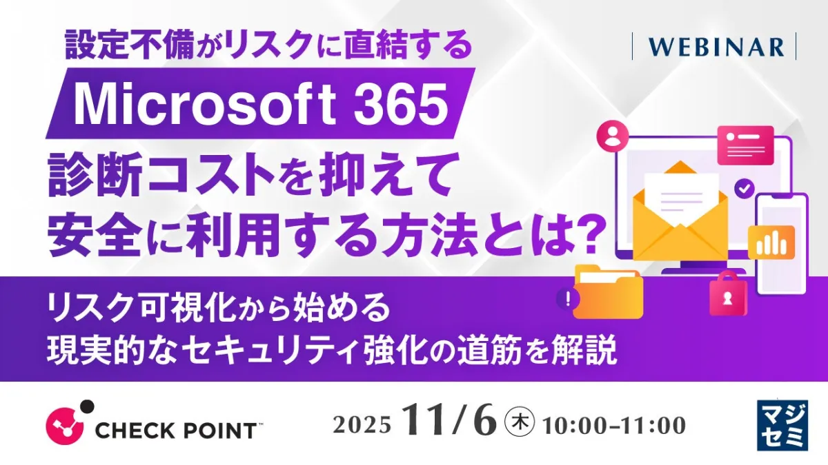 多くの企業や組織において、Microsoft 365(M365)は業務の必需品となっています。クラウドでの業務運用が進む中で、適切なセキュリティ設定が行われていない場合、リスクが高まることを忘れてはいけません。本ウェビナーでは、M365の利用に潜む見えないリスクに焦点を当て、安全に利用するための具体的な方法をお伝えします。