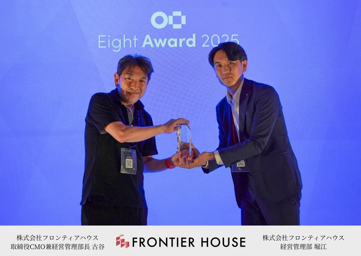 株式会社フロンティアハウス(本社:神奈川県横浜市、代表取締役社長CEO:佐藤 勝彦)は、Sansan株式会社が提供する名刺管理サービス「Eight Team」を活用し、営業活動の可視化と生産性向上を実現しました。この先進的な取り組みが高く評価され、「Eight Award 2025」において「チーム・オブ・ザ・イヤー」を受賞しました。