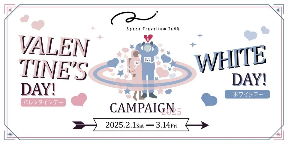 宇宙テーマの体感施設「Space Travelium TeNQ」は、2025年2月1日から3月14日までの期間、バレンタインデーとホワイトデーに合わせた特別キャンペーンを開催します。この期間中、来館者は特別デザインのドリンクや占い体験、さらには豪華なプレゼントを楽しむことができます。