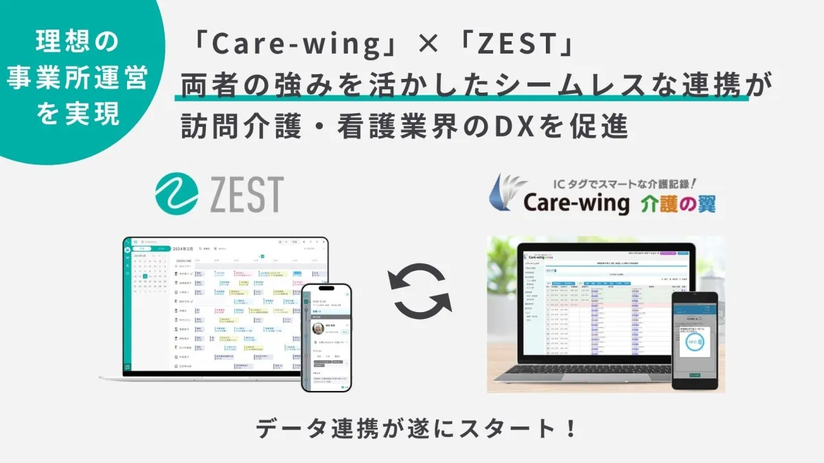 介護業界の効率化を目指す新たな取り組みが始まりました。株式会社ゼストが提供する訪問スケジュール自動作成クラウド「ZEST」と、株式会社ロジックが展開する訪問介護・看護事業者向け業務支援SaaS「Care-wing 介護の翼」が、データ連携を開始したのです。この連携により、訪問介護現場の業務負担が軽減され、質の高いケアを提供することが期待されています。