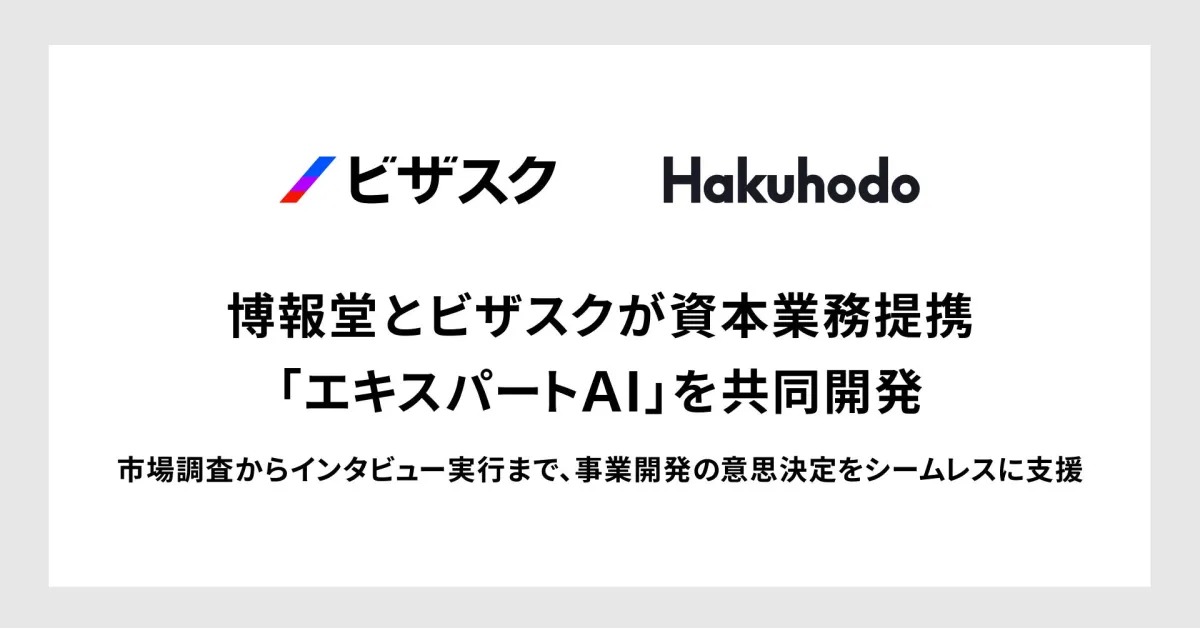 2023年4月14日、株式会社博報堂と株式会社ビザスクが資本業務提携契約を締結しました。この提携は、両社が協力して「エキスパートAI」と呼ばれるAIサービスを共同開発することを中核にしています。これは、専門家の観点や判断基準を学習したAIを用いて、事業の拡大や新たなビジネス開発における意思決定の支援を目指しています。