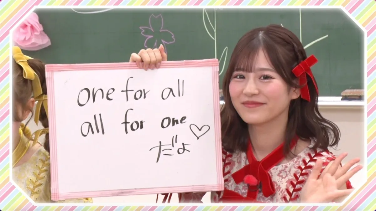 このように、生徒たちの反応を鑑みながら進む対決の中で、FRUITS ZIPPERのメンバーは自らの言葉が生徒の心にどれだけ響いているかを実感することができたことでしょう。月足天音が考えた「One for all, All for one」というフレーズに関しては、男子生徒からのツッコミもあり、メンバーの中で笑いが生まれました。