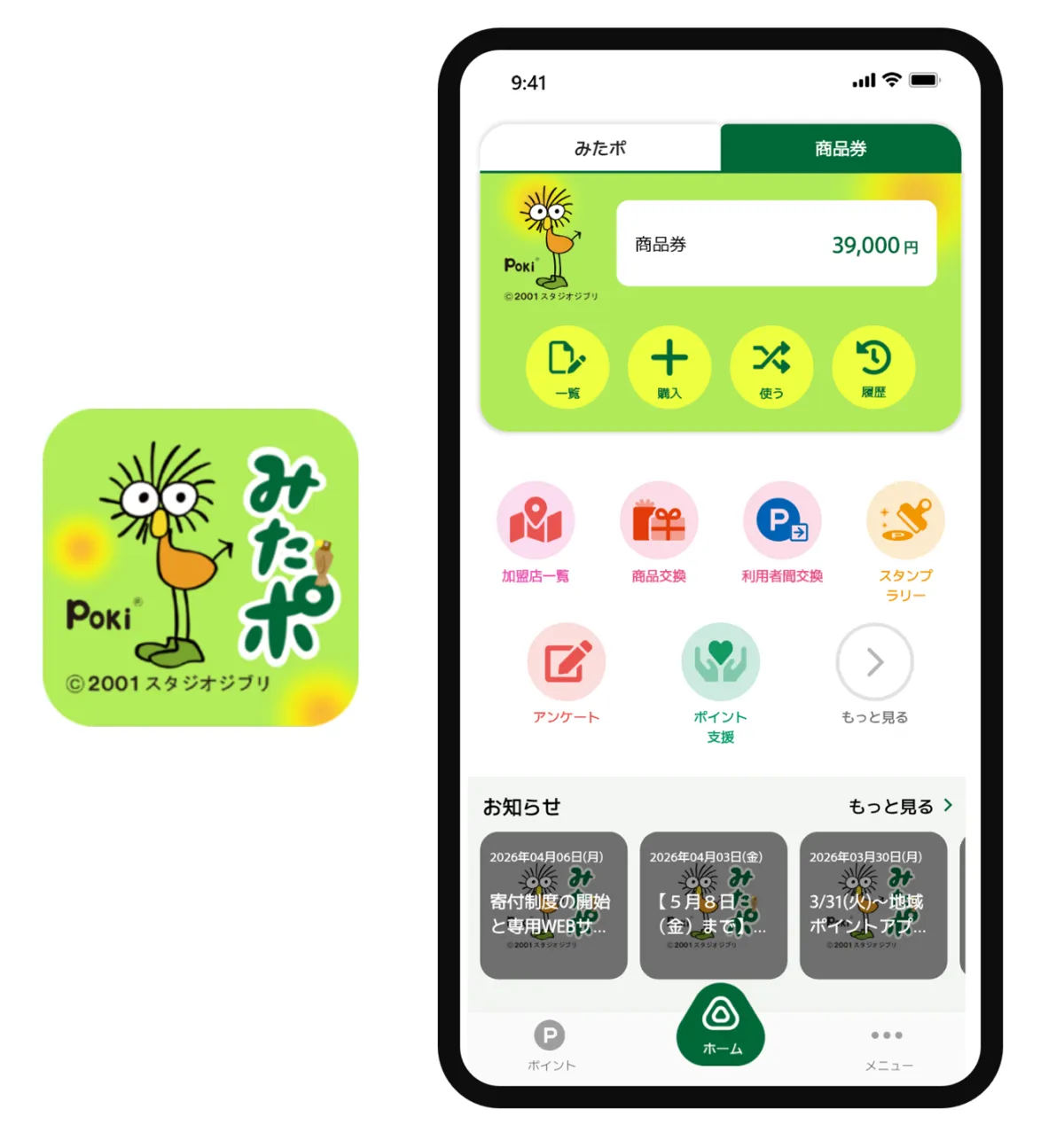 この商品券は「みたか地域ポイントアプリ」を通じて管理されます。このアプリは、地域通貨として「みたか地域ポイント」をデジタル化し、ボランティア活動やイベント参加に応じてポイントを付与します。貯まったポイントは市内の参加店舗での支払いや公共施設の利用料に使用可能です。