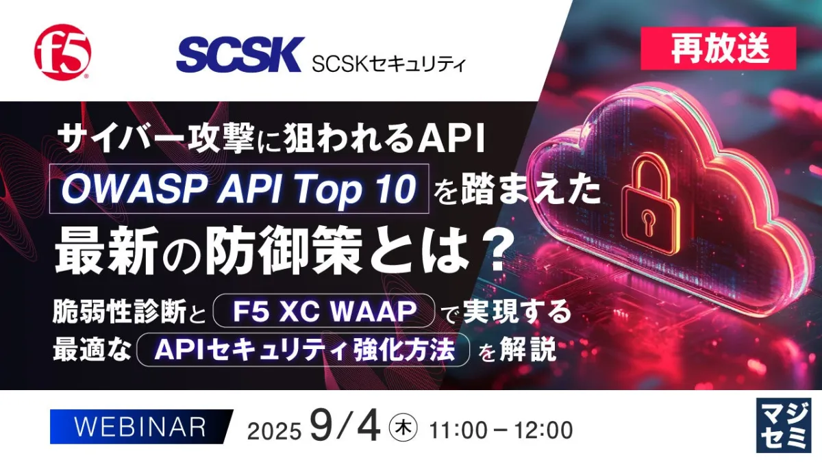 2025年6月10日に開催された「サイバー攻撃に狙われるAPI、『OWASP API Top 10』を踏まえた最新の防御策とは?」というテーマのウェビナーが、多くのリクエストを受けて再放送されることが決定しました。クラウドサービスの利用が進む現代において、API(Application Programming Interface)の重要性は高まる一方ですが、それに伴いセキュリティリスクも増加しています。本セミナーでは、APIセキュリティを強化し、具体的な対策を知ることができる貴重な機会となります。