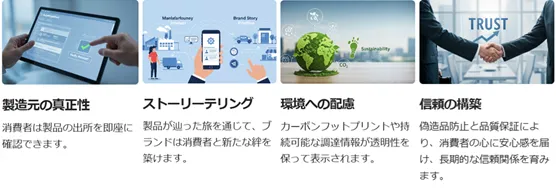 - - 信頼性の保証: Web3技術を通じて、製品の真贋や品質を保証。