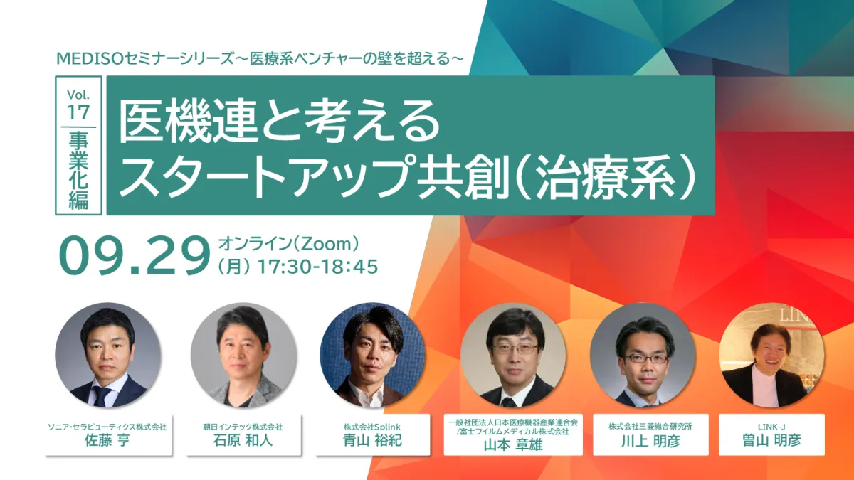 2025年9月29日(月)、MEDISOセミナーシリーズの第17回目がオンラインで開催される。このセミナーのテーマは「スタートアップ共創」であり、医療機器産業の事業化に焦点を当てて行われる。