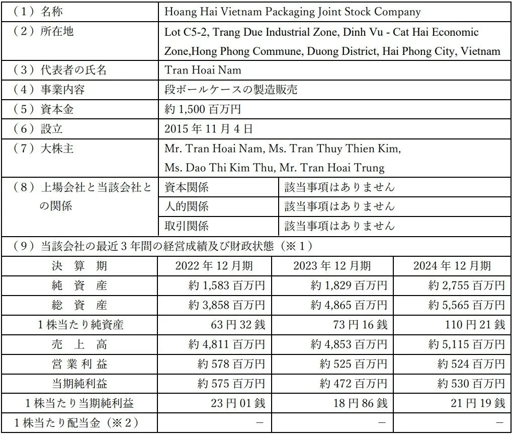 ダイナパック株式会社は、2023年にベトナムのHoang Hai Vietnam Packaging Joint Stock Companyの80%の株式を取得し、同社を子会社化することを決定しました。この動きは、ダイナパックが掲げる中期経営計画に沿ったものであり、国内外の生産拠点を拡充するための一手として位置づけられています。