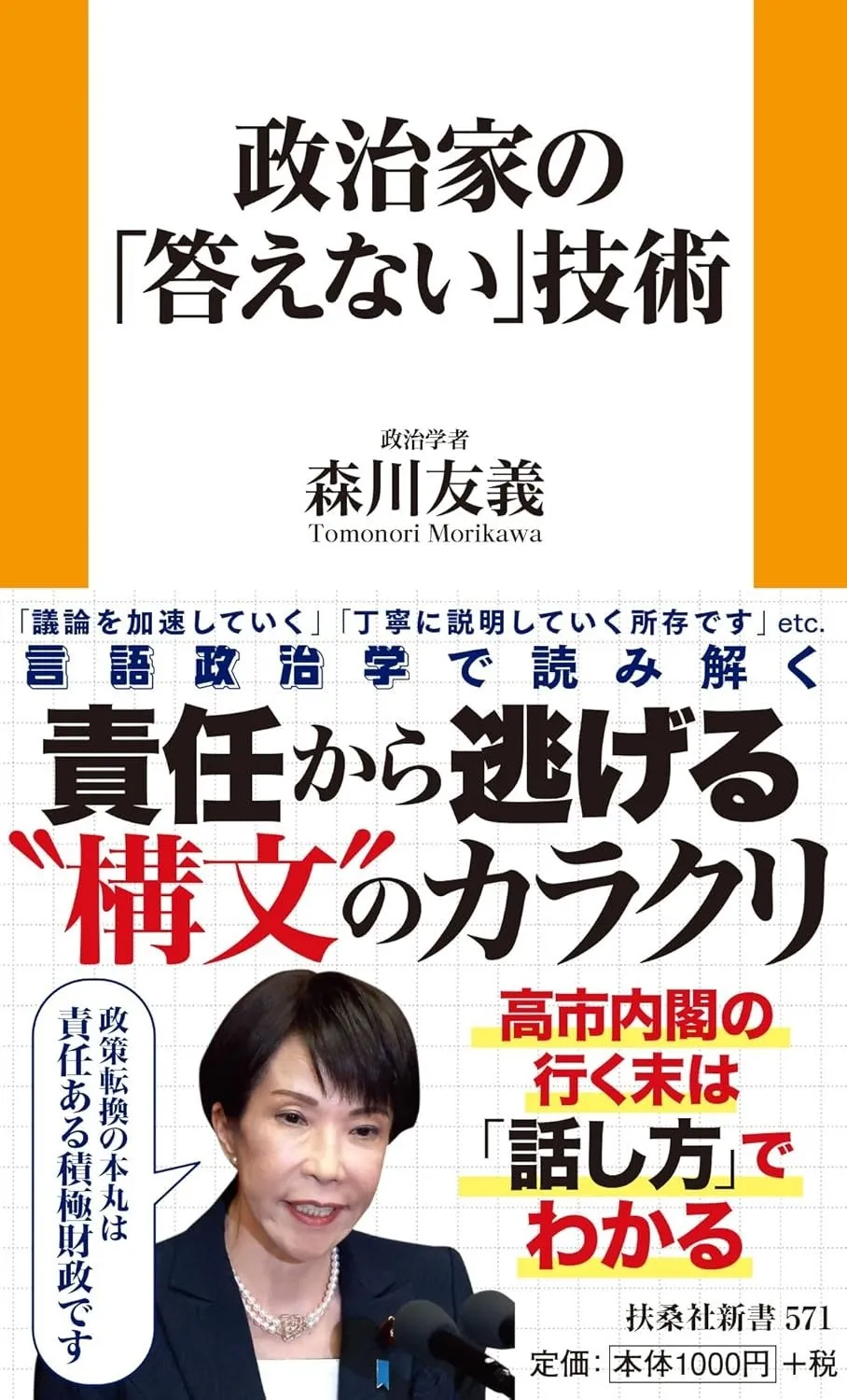 2024年4月24日、株式会社扶桑社より新たな書籍『政治家の「答えない」技術』が発売される。この本は、私たちの政治家に対する理解を深めるために、政治家たちが用いる独特な言葉のテクニック、いわゆる「政治家構文」を徹底的に探求する一冊だ。