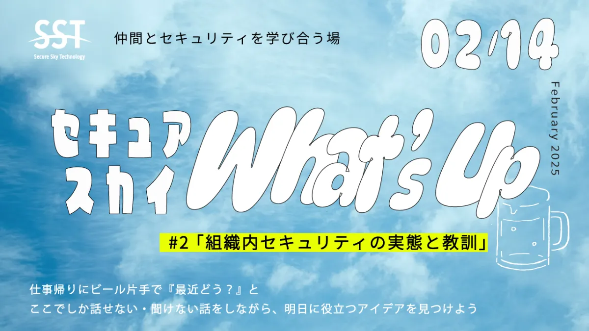 2025年2月14日、株式会社セキュアスカイ・テクノロジーは、セキュリティ責任者向けの特別なイベント「セキュアスカイ What's Up」を開催します。このイベントは、異なる業界のセキュリティ専門家が集まり、リアルな経験や意見を交換することによって、組織内のセキュリティ対策を強化することを目的としています。