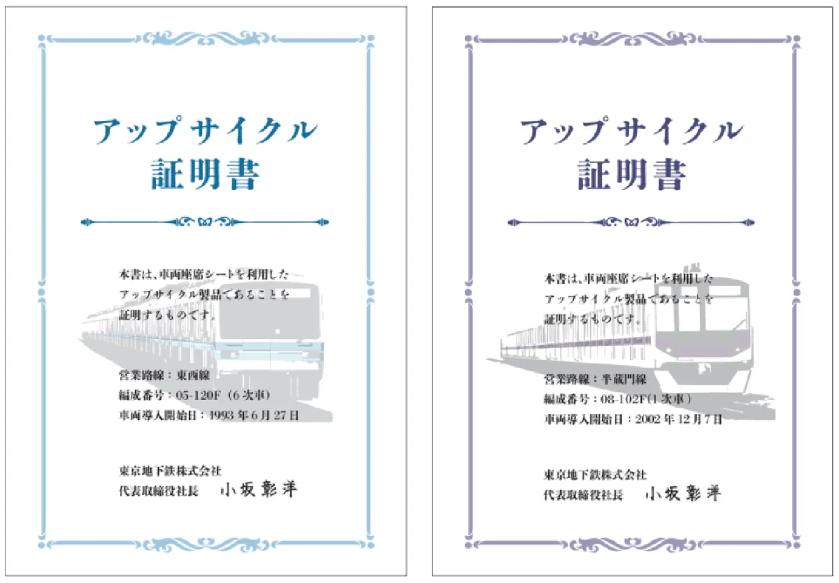 「おうちでゆるっとメトロ」は、座布団本体とカバーのセット商品です。カバーには、使用された車両の詳細を示す「アップサイクル証明書」が付いており、特別感が増します。商品には、モケット生地を使用したカバーが含まれ、安全性を考慮して難燃性の特徴も備えています。また、やわらかい触感と優れた通気性を兼ね備え、快適な座り心地を実現しています。