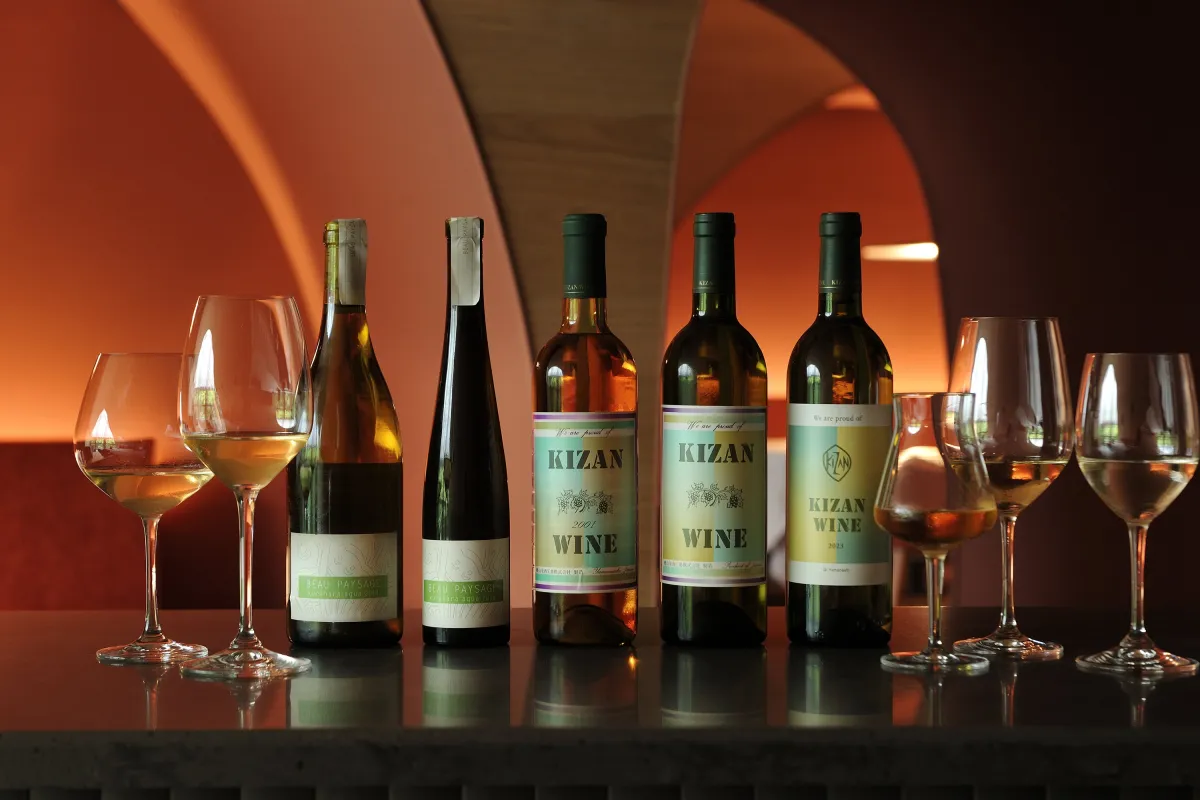 その後、18時30分からメインダイニング「OTTO SETTE」にて、垂直テイスティング形式で楽しむスペシャルディナーが用意されています。ここでは「キザンワイン白」の複数の年代のワインとともに、「野菜のアソルティメント」がペアリングされます。3つの異なる年代のワインを食事と共に楽しむことで、葡萄品種「甲州」の成熟の違いを感じることができます。