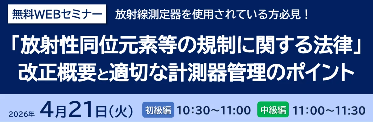 『放射性同位元素等の規制に関する法律』の改正概要と適切な計測器管理のポイントをテーマにした無料WEBセミナーを開催します。このセミナーは、放射性同位元素等の法規制や計測器管理に関心のあるすべての方々にとって貴重な情報の提供となるでしょう。