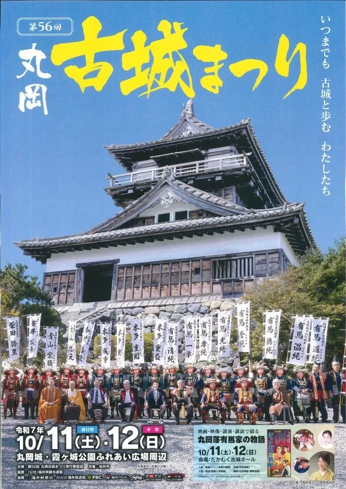 さらに、10月11日と12日には「丸岡藩有馬家の物語」という歴史イベントも併せて開催され、ブリッジイベントとしての側面を持ちます。このイベントでは、古城まつりと連動した内容で、有馬家の歴史や功績を紹介するプログラムが2日間にわたり実施されるため、歴史に興味のある方もぜひ足を運んでみてください。