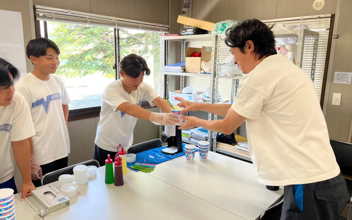 今夏、厳しい暑さの中で働く建設業の現場に、安曇川中学生たちがかき氷を提供するイベントが開催されました。これは、株式会社桑原組が地域のこども家庭センター少年センター(あすくる高島)と協力し、熱中症対策の一環として実施した取り組みです。中学生たちは、自ら企画し、運営に携わることで地域社会への参加を実感しました。
