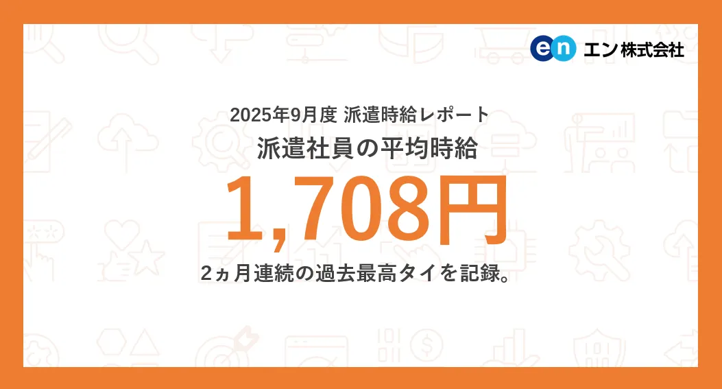 2025年9月の派遣社員平均時給、過去最高タイの1,708円を記録!