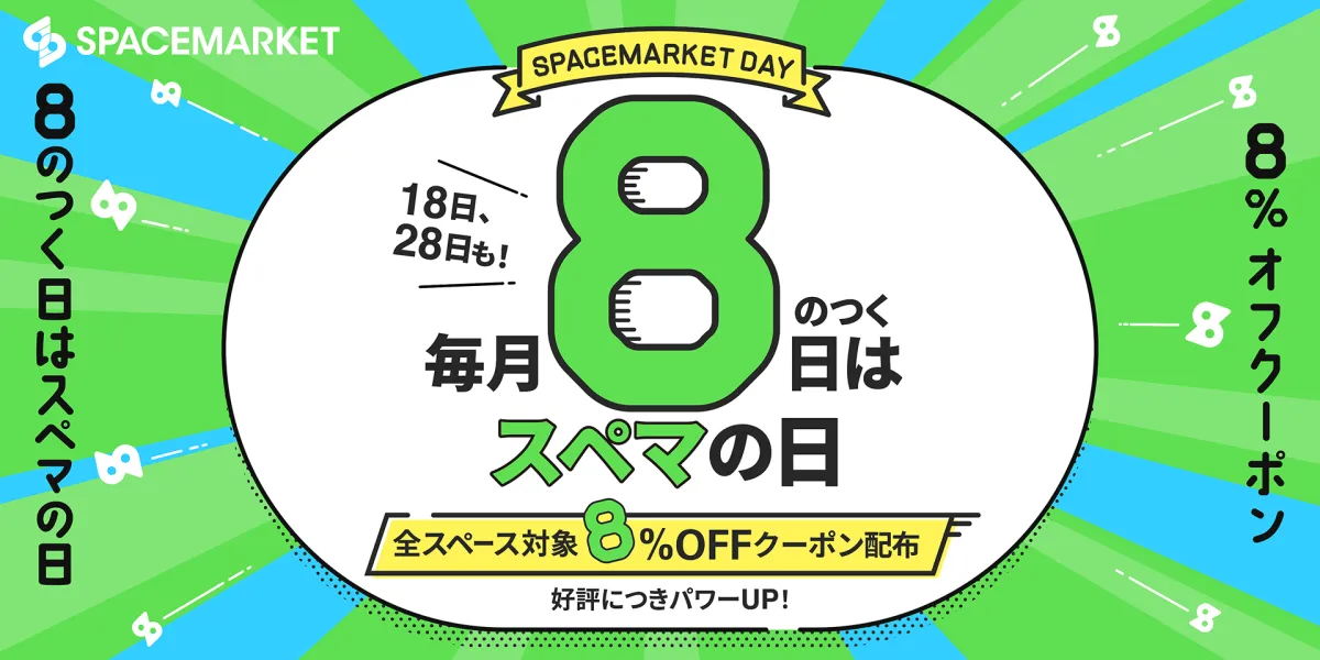 株式会社スペースマーケットが発表した新キャンペーン「毎月8のつく日はスペマの日」が、さらなるお得感を加えてリニューアルします。