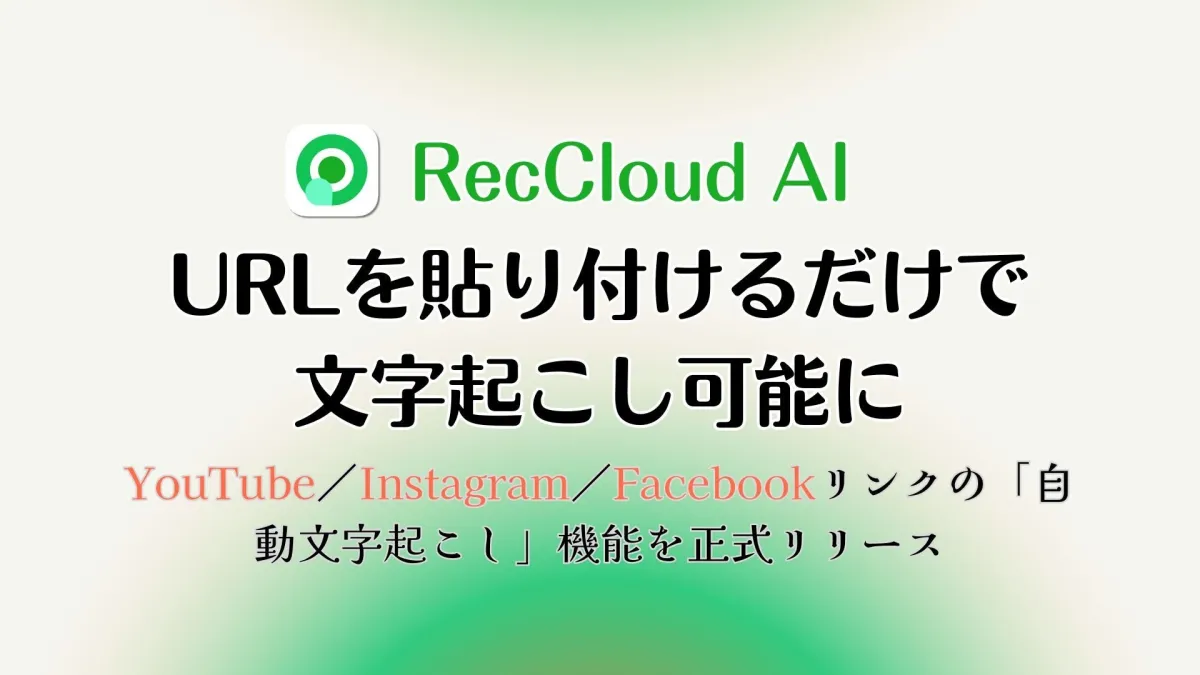 音声や動画の文字起こしを革新するAIプラットフォーム「RecCloud(レックラウド)」が新たにリリースした機能により、音声や動画の処理がこれまで以上に簡単となりました。今回のアップデートでは、YouTube、Instagram、FacebookなどのURLを直接貼り付けるだけで、高速かつ高精度な文字起こしが実現します。