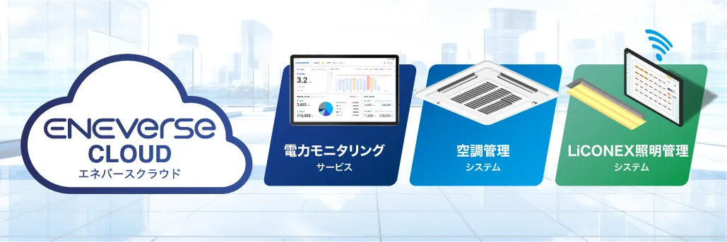 このサービスは、施設内の電気系統や各設備ごとの電力使用量を可視化する機能を持っています。これにより、使用状況をリアルタイムでパソコンやタブレットを通じて確認・分析することが可能です。さらに、時間帯や曜日、気象の影響も考慮することで、電力の最適化や運用の改善が実現します。加えて、このサービスはENEverseの空調や照明の制御とも連携し、さらなる省エネにつながります。