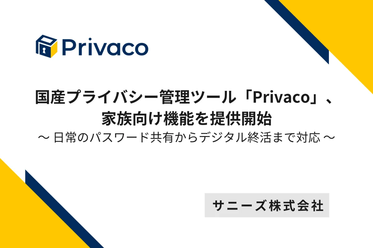 サニーズ株式会社が開発した国産プライバシー管理ツール「Privaco」は、家族向けの新しい機能の提供を開始しました。この機能は、日々の生活におけるデジタル情報の管理を円滑にし、セキュリティを強化することを目的としています。日常的に利用されるログイン情報から、万が一の際のデジタル終活に至るまで、多岐にわたる機能が用意されています。