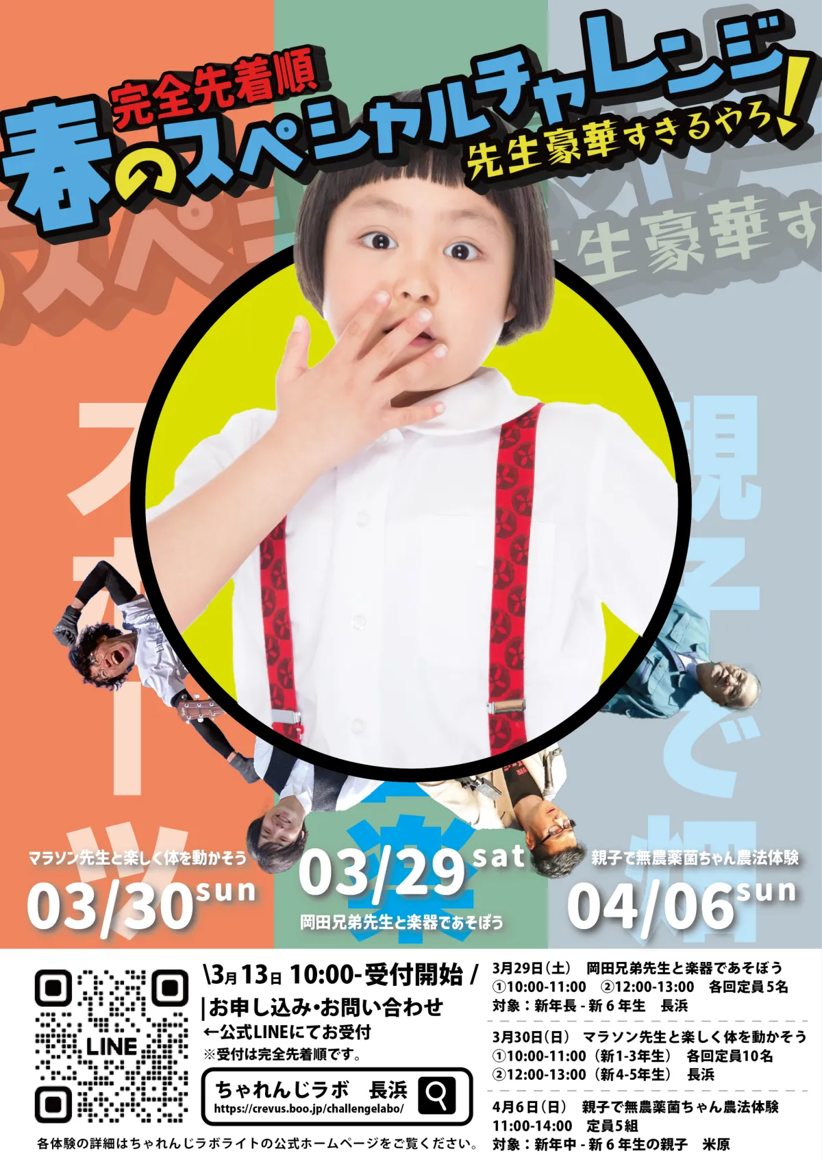 主催は株式会社crevusdesign(ちゃれんじラボライト)となり、公式LINEアカウントやウェブサイトにて詳細情報を公開中です。この春の特別な体験を利用して、新たなチャレンジをしてみませんか?