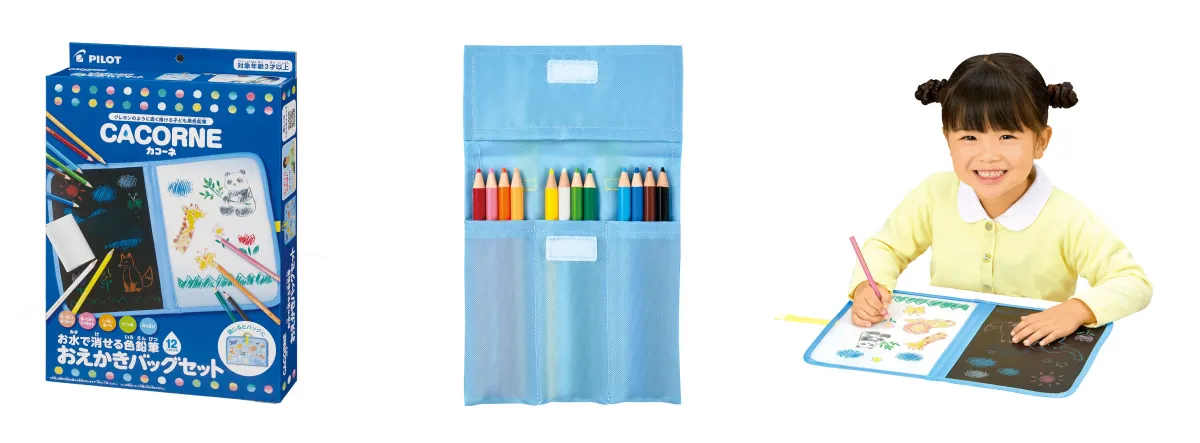 - セット内容:おえかきバッグ、色鉛筆ケース、CACORNE色鉛筆12色、消去用布
