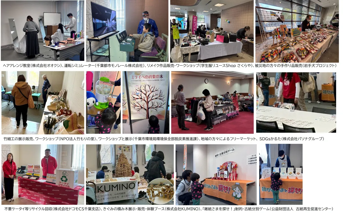 さらに、企業や団体からも様々な出展がありました。例えば、現役美容師によるヘアアレンジ教室や、千葉都市モノレールの運転シミュレーター体験など、実践的かつ楽しめるコンテンツが掲載されました。特に、学生服リユースShopのワークショップや、NPO法人による竹細工・竹炭の展示もあり、地域活性化に寄与する試みが見受けられました。