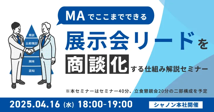 このような課題を解決できる「MAでここまでできる!」というウェビナーが、株式会社シャノンによって企画されました。このウェビナーでは、マーケティングオートメーション(MA)を利用した展示会リードの管理方法や、商談へと繋げるための決定的な方法を具体的なデモを通じて紹介します。