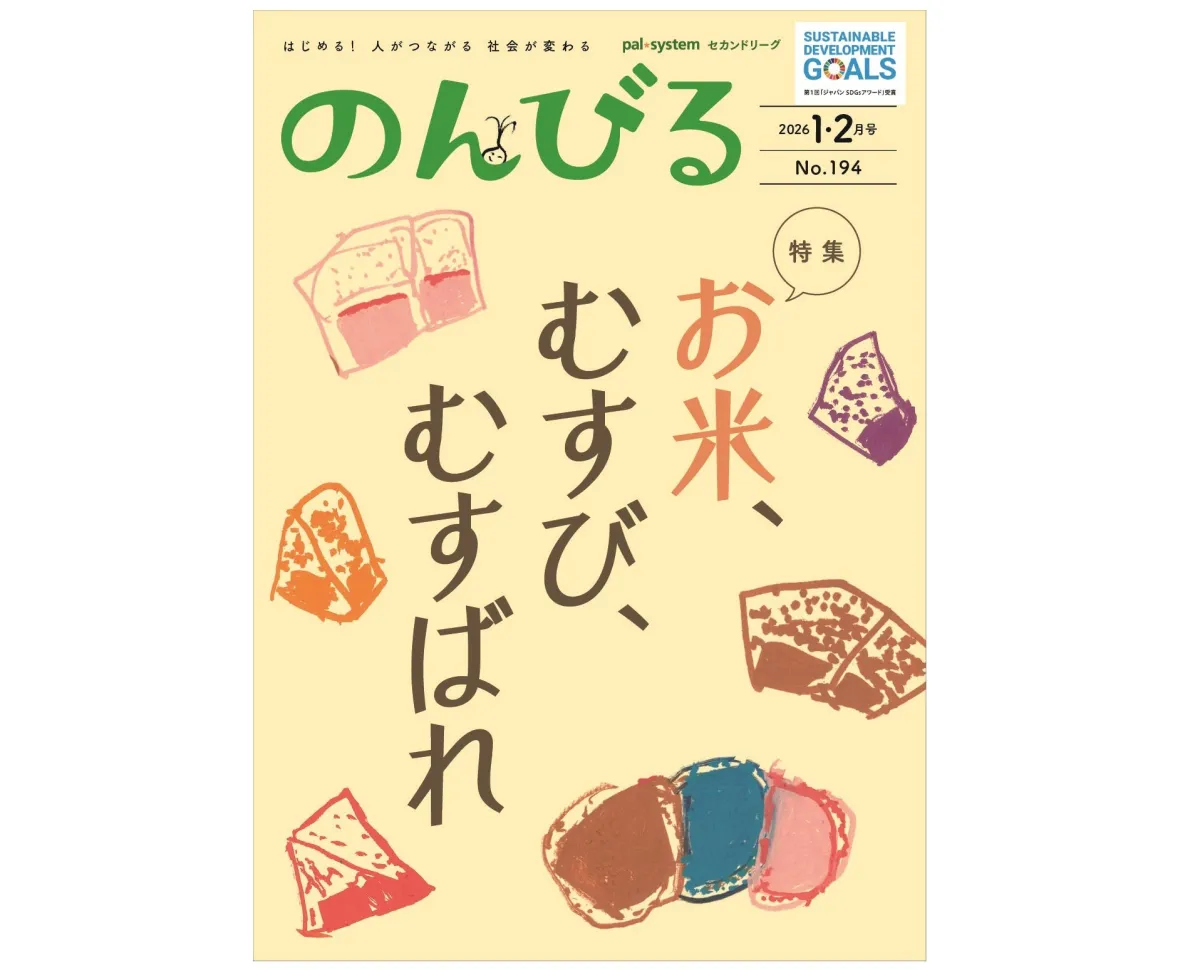 「のんびる」1・2月号の特集は「お米、むすび、むすばれ」。地域と暮らしの課題解決をテーマに発行されるこの情報誌は、私たちの食事の基盤であるお米の生産、流通、供給に関わる人々の声を聞くことを目的としています。
