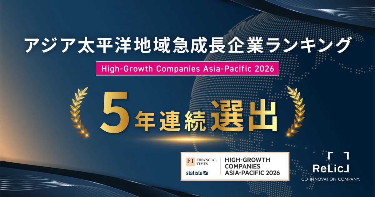 Relicは、これまでに5,000社以上の新規事業開発を手掛け、国内シェアでトップを誇る企業です。この5年連続の選出は、単なる一時的な成長にとどまらず、組織そのものが進化し、新しい経営スタイルを構築していることが寄与しています。