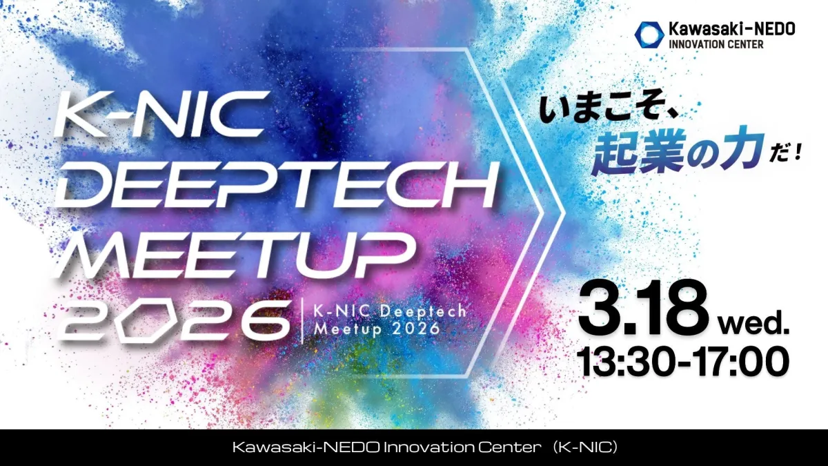 2026年3月18日、神奈川県川崎市に位置するKawasaki-NEDO Innovation Center(K-NIC)で、ディープテックとスタートアップをテーマにしたミートアップイベント「K-NIC Deeptech Meetup 2026」が開催されました。参加者は現地で113名を記録し、オンライン視聴も合わせると最大で41名が参加するなど、多くの関心を集めました。