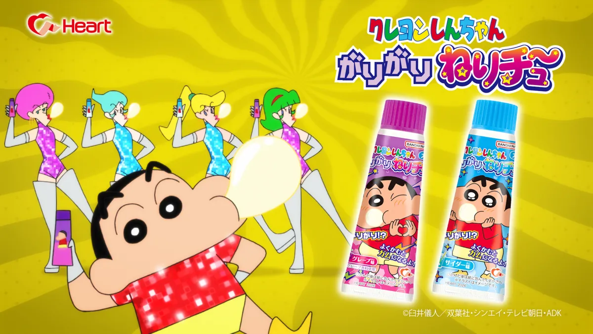 2026年3月16日、株式会社ハートから「クレヨンしんちゃんがりがりねりチュ~サイダー」と「クレヨンしんちゃんがりがりねりチュ~グレープ」が全国各地のスーパーマーケットやコンビニエンスストアで発売されました。これは、ロングセラー商品「クレヨンしんちゃんねりチュ~」のリニューアルにあたり、さらなる楽しさを加えた新商品です。
