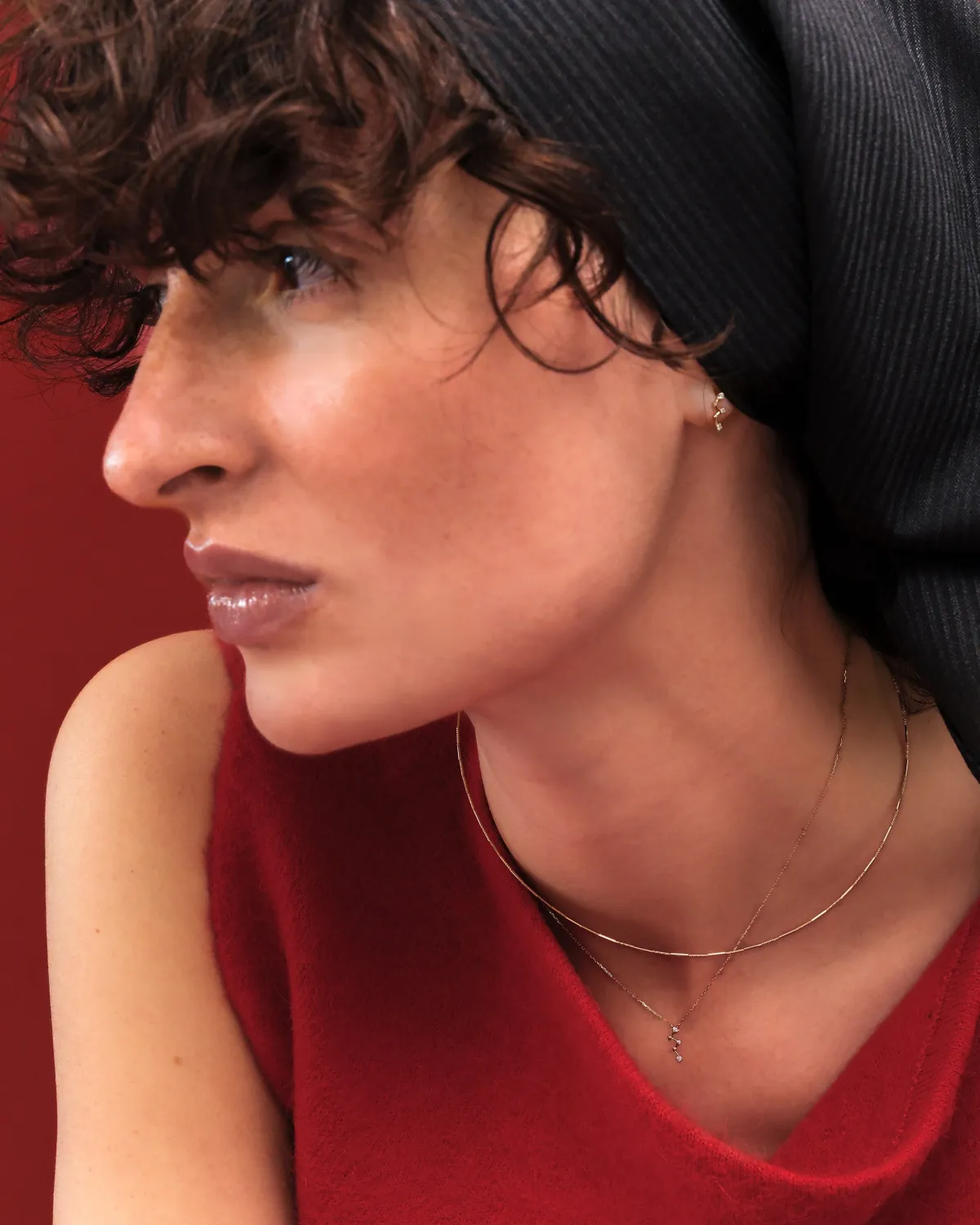 このジュエリーは重ね着けにも対応しており、組み合わせ次第で様々なスタイルを楽しめます。シンプルな装いに一つ加えるだけで、華やかな印象を与えてくれるため、忙しい毎日にもぴったりです。