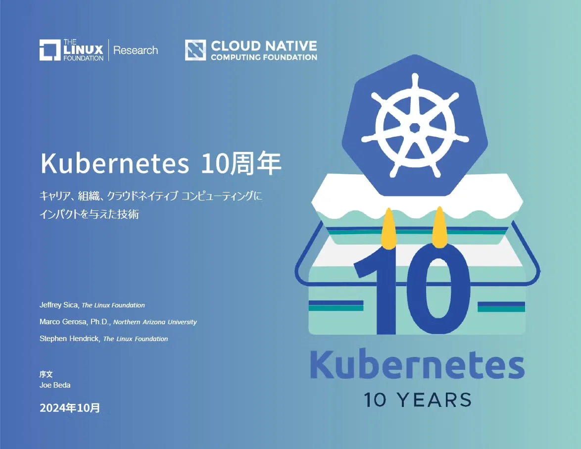 2024年にKubernetesは10周年を迎え、この重要な節目を記念して、Linux Foundation Research (LF Research) がCloud Native Computing Foundation (CNCF) の委託を受けて作成した調査レポート「Kubernetes 10周年」が公開されました。このレポートでは、Kubernetesがコミュニティや個々の開発者に与えた影響を深く掘り下げ、テクノロジーの進化を振り返ります。