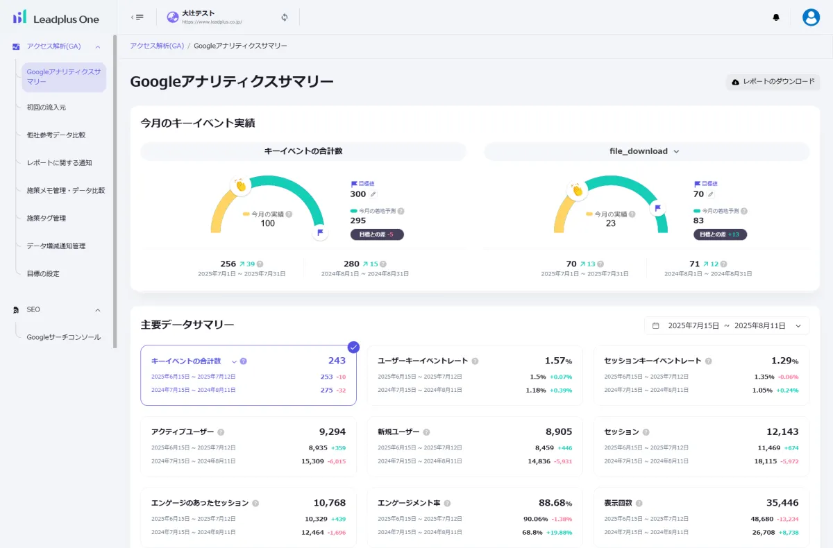 近年では、GA4やサーチコンソールといったツールを使いこなせないと感じる企業が増えており、マーケティング施策を分析することが難しいという声もよく耳にします。そこで、Leadplus One®は、こうした課題を解決し、機能を一元化したオールインワンのマーケティングソリューションとして私たちの前に登場したのです。
