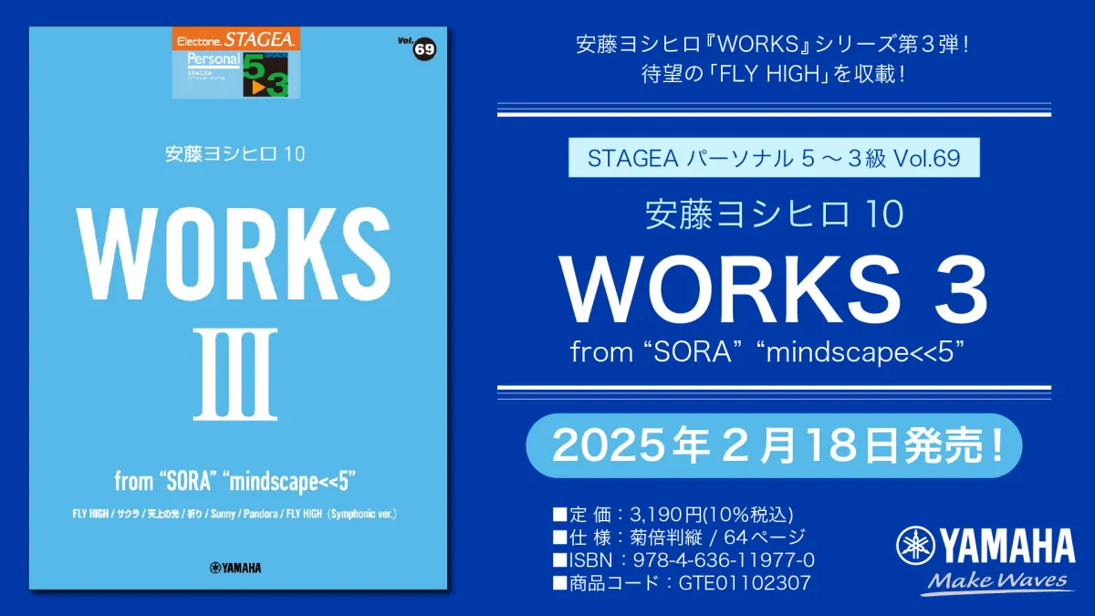 株式会社ヤマハミュージックエンタテインメントホールディングスが、新たな楽譜集「エレクトーン STAGEA パーソナル 5~3級 Vol.69 安藤ヨシヒロ10 『WORKS 3 ~from “SORA”“mindscape<<5”』」を2025年2月18日より発売することを発表しました。この楽譜集は、有名作曲家安藤ヨシヒロによるオリジナル作品を特集したものです。