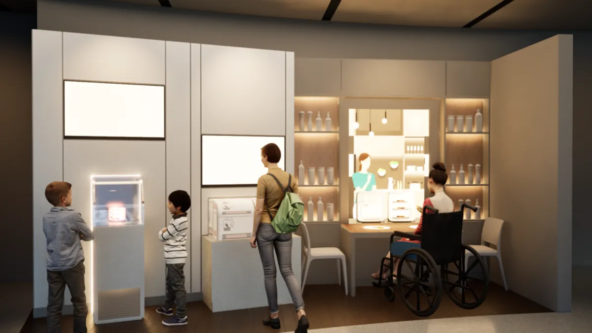 大会のパビリオンには3Dバイオプリント技術を利用した培養肉の実物と共に、ミートメーカーというコンセプトモデルが展示されます。このミートメーカーは、家庭で個人の健康や好みに合わせた霜降りステーキを作り出す道具です。