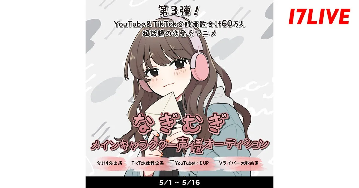 オーディションの開催期間は、2025年5月1日から5月16日で、参加条件を満たすライバーであれば誰でも応募可能です。合格したライバーは、『なぎむぎ』の新作ストーリーにアニメ動画やTikTok連載の配信において声優として出演することができます。