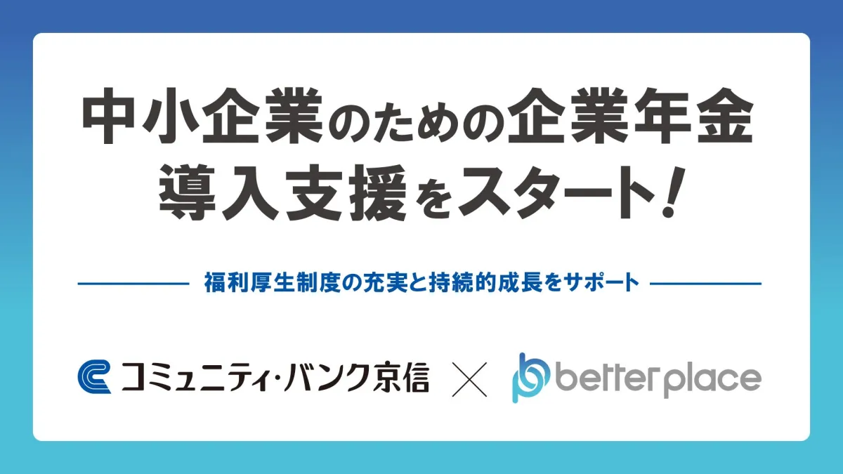 コミュニティ・バンク京信(法名:京都信用金庫)は、中小企業が抱える人材面での経営課題を解決すべく、株式会社ベター・プレイスとの業務提携を発表しました。提携の中心となるのは、「福祉はぐくみ企業年金基金」、通称「はぐくみ企業年金」です。この制度は中小企業が企業年金や退職金制度を導入しやすくすることを目的としています。